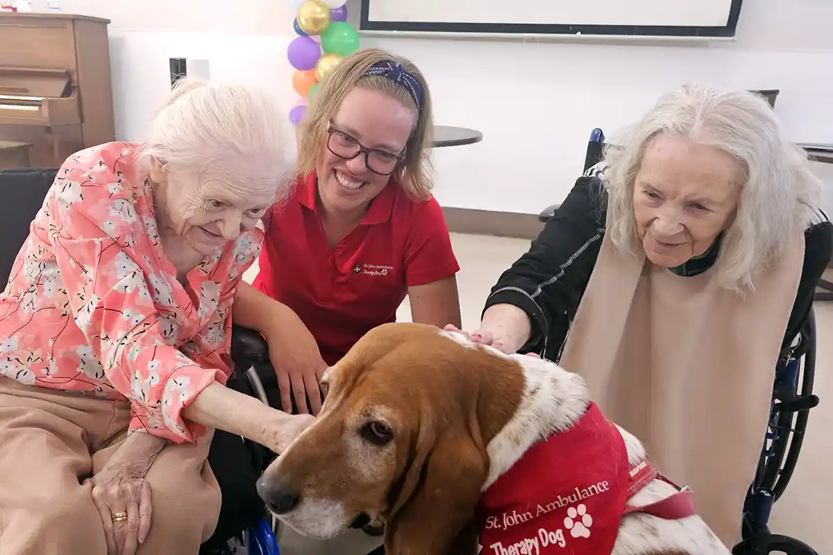 At AgeCare South Terrace (Edmonton, AB), Taylor’s visits are always met with excitement and anticipation. Alongside her therapy dogs, Heidi and Atlas, she brings moments of companionship and connection that residents look forward to each week.